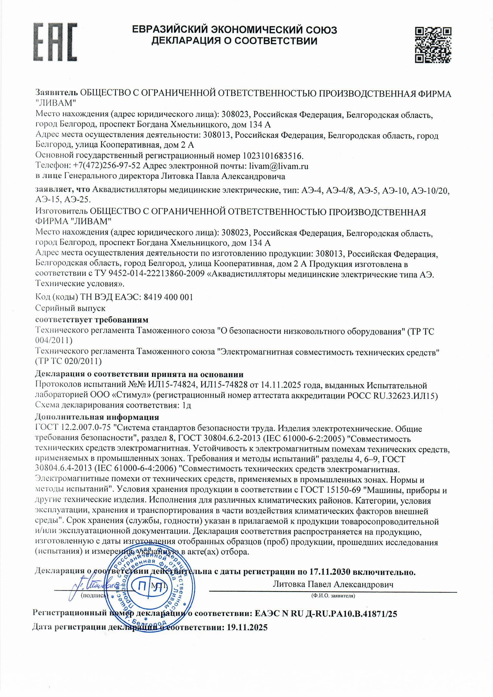 2025 © Дистиллятор, бидистиллятор ООО ПФ «Ливам»